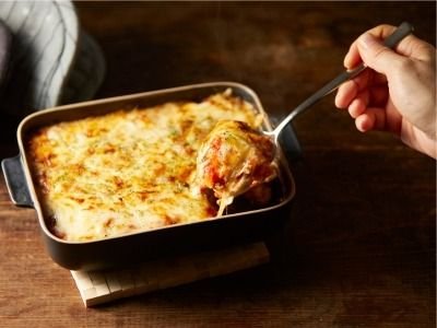 Gourmet beef lasagna with tomato sauce, bechamel mozzarella and parmesan
