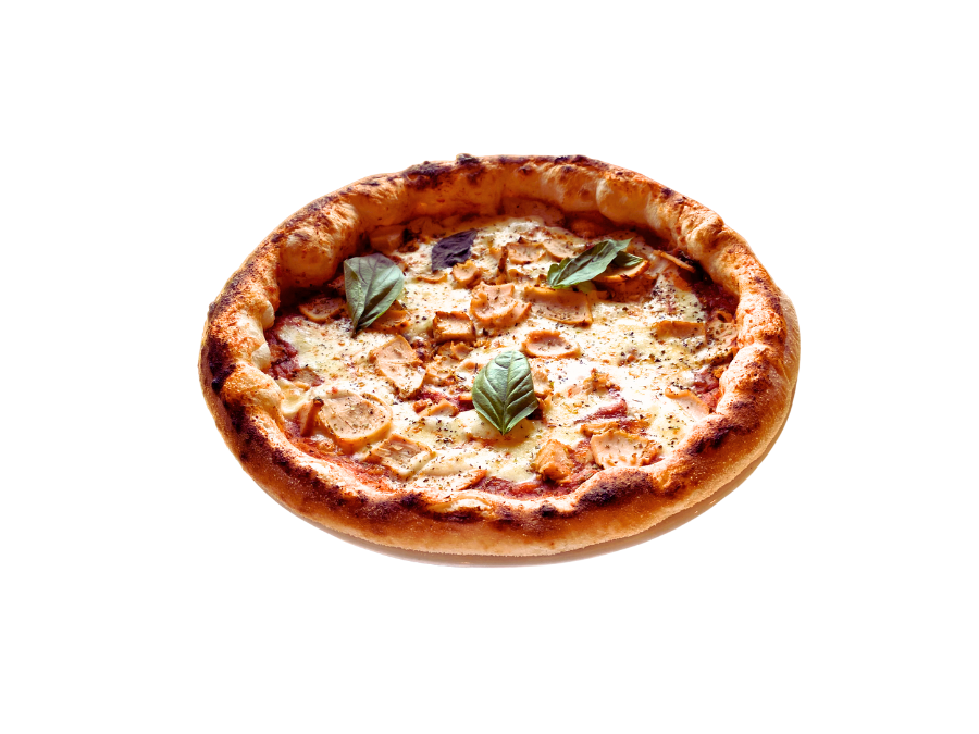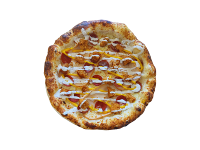 Tomato sauce, mozzarella, oregano and strips of grilled chicken breast topped with spicy buffalo sauce