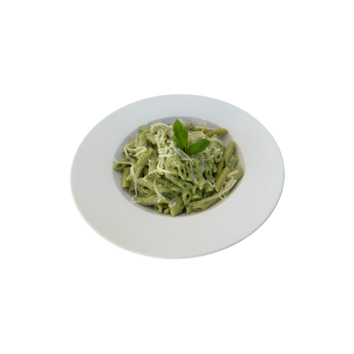 Our gourmet fresh pesto sauce, creamy sauce and parmesan cheese