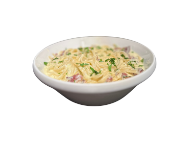Our gourmet carbonara sauce with beef bacon, parmesan and oregano