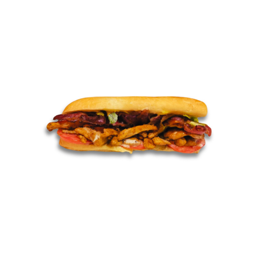 Tomato and lettuce, chicken and beef bacon topped with our home made ranch. served with French fries
