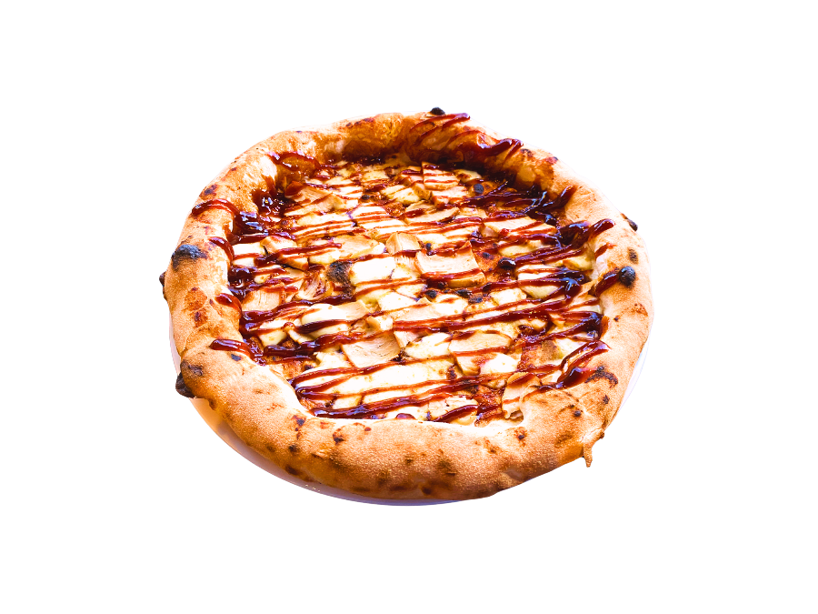 BBQ sauce, mozzarella, oregano and strips of grilled chicken breast, red onion