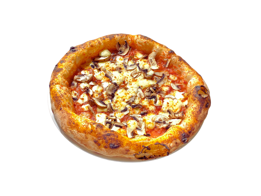 Tomato sauce, mozzarella, oregano, and mushrooms