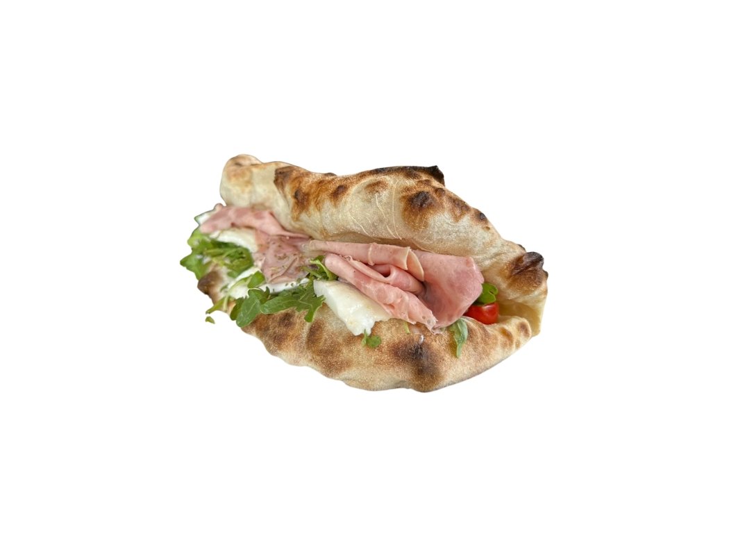 Bigs dough Baked and topped with Rocca, Cherry tomato and Buffalo Mozzarella Cheese, Bologna meat, Oregano and Olive Oil.